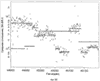 Тщательное исследование двух таких участков показано на фиг.6С и фиг.6D, с обозначением отношений в виде соединенных кружков, и значениями сегментации в виде сетки. На фиг.6С аномальный участок составлял 135 т.п.о. на хромосоме 6р21 (координаты зондов 32518-32524, координаты генома June 35669083-35804705), и охватывал три известных гена. На фиг.6D участок составлял 620 т.п.о., участок из хромосомы 2р11 (координаты зондов 9927-9952, координаты генома June 88787694-89385815), который содержал несколько вариабельных участков тяжелой цепи.