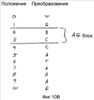 69. Способ по п.68, где указанную частоту встречаемости предшествующего нуклеотида получают, используя К-интервалы, где указанные К-интервалы хранят в заданных местоположениях в указанном преобразовании и поддерживают промежуточную сумму каждого нуклеотида, который появляется в указанном преобразовании вплоть до и включая конкретное заданное местоположение.