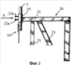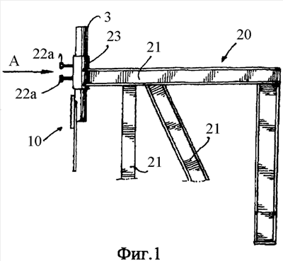 Жесткая конструкция 20 образована несколькими металлическими двутавровыми профилями, соединенными между собой и прикрепленными к стене или к защитному ограждению окомковательной тарели 30. См. фиг.4.