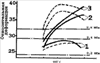 Результаты опытов по определению зависимости диаметра отверстия от толщины уплотняемого слоя отражены на фиг.4, где представлен график зависимости относительной деформации от относительной толщины уплотняемого слоя при трех уровнях нагрузки: 1 – нагрузка 0,2 МПа; 2 – нагрузка 0,4 МПа; 3 – нагрузка 0,6 МПа;