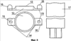 на фиг.3 – хомут 12, имеющий отверстие 13, отводки 14 с прорезями 15, ушки 16;