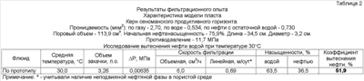 Модель пласта вертикально помещали в воздушный термостат и выдерживали при температуре опыта (равной пластовой температуре) не менее 10 часов. Затем в модель пласта с постоянной скоростью закачивали водогазовую смесь. При этом газ и воду берут в объемном отношении 6:4. На выходе из модели пласта измеряли с помощью мерников высокого давления количество выделившейся нефти и количество прошедшего через модель вытесняющего агента. За изменением перепада давления следили по автоматическому датчику давления с записью показаний ПЭВМ. Для приготовления водогазовой смеси использовали метан и модель воды сеноманского горизонта.