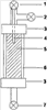 Пример 1. Подготовка модели пласта. Кернодержатель из органического стекла, схема которого представлена на чертеже, заполняли кварцевым песком, насыщали под вакуумом моделью воды сеноманского горизонта (плотность 1030 кг/м3 при 20°С). Затем из пористой среды вытесняли воду продувкой азота до тех пор, пока вода не прекращала выделяться. При этом воздух подавали сверху в вертикально расположенную модель пласта. Снизу в модель закачивали изовискозную модель нефти Тазовского нефтегазового месторождения (плотность – 919 кг/м3, вязкость 58 мПа·с). Перед закачкой нефти в модели снижали давление до 5-6 кПа и закачку нефти вели с малой скоростью. Визуально следили за высотой подъема нефти и, когда газонефтяной контакт оказывался на 1,5-2 см ниже трубки для подачи вытесняющих агентов, закачку прекращали. Закрывали вентиль 3 и в модель подавали газ до давления 0,5 МПа.