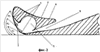По результатам проведенных экспериментов установлено, что граница зоны интенсивного отрыва потока формируется в секторе до 60° от точки перегиба накрылка 4 на его тыльной выпуклой поверхности 7. Наибольшая эффективность, то есть минимум затрат энергии управляющего потока на устранение отрывного вихреобразования на тыльной поверхности 7, достигается при выполнении трех конфузорных каналов 5 в диапазоне углов: 25° 1 30°; 45° 2 50°; 55° 3 60°. При углах выхода меньше вышеуказанных значений конфузорных каналов 1 2, 3 подача управляющего потока происходит в зону на выпуклой тыльной поверхности 7 накрылка 4 до точки отрыва управляющего потока, что приводит к нерациональному расходу энергии управляющего потока. При углах больше указанных 1 2, 3 управляющий поток воздействует в области за точкой отрыва потока, что приводит к резкому ухудшению эффективности устранения отрывного вихреобразования.