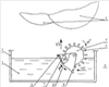 При работе передачи 1 вращение передается на колесо 4, которое лопастями 5 захватывает смазочный материал (V1) из ванны 3 и подает его наверх (V2) – в зону вращающейся передачи 1. Наличие корпуса 7 упорядочивает поток смазочного материала, подаваемого колесом 4. Наличие уширения 8 позволяет оптимизировать захват колесом 4 смазочного материала, а наличие уширения 9 – направить поток в необходимую зону передачи 1.
