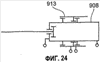 Два других специальных исполнительных механизма системы отключения по изобретению представлены соответственно на Фиг.19-21 и 22-24. В этом варианте реализации исполнительный механизм содержит два гидроцилиндра, первый гидроцилиндр 808, 908 управляет затворами, а кольцевой гидроцилиндр, установленный концентрически второму гидроцилиндру 813, 913, служит для открывания хомута. Гидроцилиндр с уменьшенным ходом 813, 913 для открывания хомута в этой конфигурации может быть обычным гидроцилиндром.