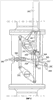 Первая неподвижная тяга 303 установлена с возможностью качания одного из концов секторов 301 и 302 в плоскости, образованной этими двумя секторами, позволяя им совершать колебательные движения одного относительно другого в одной плоскости.