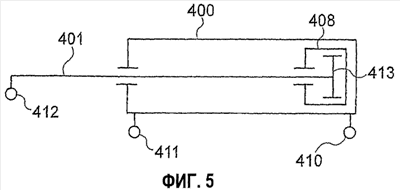 Фиг.5-7 схематично представляют такой исполнительный механизм 400, причем его шток 401 находится в положениях, представленных на Фиг.2-4.