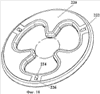 На фиг.20 проиллюстрирована видоизмененная чашка 240, которая аналогична чашке 40 по предыдущим чертежам. Чашка 240 на фиг.20 иллюстрирует на виде сверху выступающее вниз вогнутое формирование 46, которое будет принимать пробку 32, отходящую вниз от рассекателя 30.