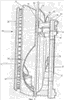 Как можно видеть на фиг.20, 21 и 23, основание 246 формирования 46 эллиптическое и в общем горизонтальное со стенкой 248 формирования 46, также являющейся эллиптической и клиновидной. Будет отмечено, что главные оси эллипсов, от которых образовано формирование 46, в общем лежат на радиальной оси от центра блока горелок 110 по фиг.23 или параллельно ей.
