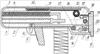 Наличие тяги, связывающей защелку приклада с шепталом автомата, позволяет синхронизировать работу пружинно-выкатного амортизатора и автоматики оружия.
