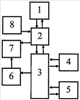 При этом первый вход приемо-передающего устройства 2 соединен с выходом антенны 1, а второй вход соединен с первым выходом БЦВМ 3, третий вход устройства 2 соединен с выходом антенны 8, первый выход приемо-передающего устройства 2 соединен со входом антенны 1, второй выход соединен с первым входом БЦВМ 3, третий выход устройства 2 соединен с первым входом антенны 7, второй вход БЦВМ 3 соединен с выходом аппаратуры 4, третий вход БЦВМ 3 соединен с выходом аппаратуры 5, второй выход БЦВМ 3 соединен со входом аппаратуры 4, третий выход БЦВМ 3 соединен со входом аппаратуры 5, четвертый выход БЦВМ 3 соединен со входом аппаратуры 6, выход аппаратуры 6 соединен со вторым входом антенны 7.