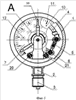 Прототипом выбран манометр с трубчатой пружиной с одинарным индуктивным контактом [3], который в основном применяется для наблюдения за давлением в газовых баллонах (подается сигнал при снижении давления газа ниже допустимого). Одинарный индуктивный контакт расположен на защитном стекле, на котором имеется зеленая метка, соответствующая точке переключения. Регулировка указателей граничных значений давлений происходит путем вращения стекла в пределах 45°, начиная с первой отметки шкалы.