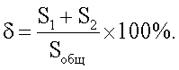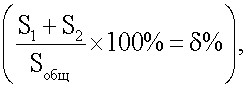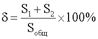 Для определения значений % выполняли действия в соответствии с заявленным способом, а именно: после стандартной обработки дифрактограммы – проведения линии фона, высоты 2 mах, проведения средней линии, продолжали боковые ветви дифрактограммы до пересечения с линией фона, отсекая перенапряженные области слабой интенсивности, и измеряли площадь отсеченных участков S1+S2, а также интегральную площадь всей рентгенограммы Sобщ. Значение локальной концентрации микронапряжений % определяли из отношения