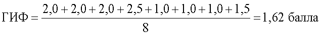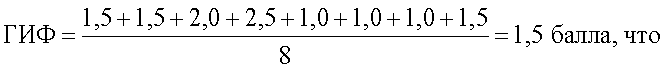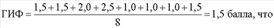 Полученные баллы суммируют и усредняют. При величине усредненного показателя, равного 1,0, устанавливают норму, от 1,1-1,5 – напряжение компенсаторных процессов, при 1,6 и выше – истощение механизмов саморегуляции. Предложенный способ определения адаптационного состояния организма человека поясняется примерами конкретного выполнения Пример 1. Пациент 45 лет. Бизнесмен. Считает себя здоровым человеком. При исследовании: ГДИ был равен 75 усл.ед. (1,5 балла), количество лимфоцитов в крови составило 38% (1,5 балла), АРС по силе реакции (площадь белого пятна 5,3 см2) и по длительности реакции (исчезновение белого пятна через 65 минут) равнялись по 1,5 балла. Остальные исследуемые показатели были в пределах нормы, т.е. по 1 баллу. Следовательно, усредненный показатель (ГИФ) равен: свидетельствует о напряжении компенсаторных процессов. Пример 2. Пациент 52 года. Служащий. Предъявляет жалобы на повышенную раздражительность, плохой сон, периодические головные боли, быструю утомляемость на работе. При исследовании крови количество лимфоцитов 42% (2 балла), ГДИ (84 усл.ед.) 2,0 балла, АРС по силе реакции (площадь белого пятна 7,2 см2) 2 балла, по длительности реакции (исчезновение белого пятна через 84 минуты) 2,5 балла. Гематокрит, фибриноген, сахар крови по 1,0 баллу, холестерин (6,5 ммоль/л) – 1,5 балла. Усредненный показатель (ГИФ) равен: Это указывает на истощение механизмов саморегуляции. Пример 3. Пациент 36 лет. Сотрудник МЧС. Участник ликвидации последствий чрезвычайных ситуаций. Поступил на санаторный этап восстановительного лечения. При поступлении жалобы на легкую смену настроения, плохой сон, повышенную раздражительность. При исследовании крови количество лимфоцитов 40% (1,5 балла), ГДИ (76 усл.ед.) 1,5 балла, АРС по силе реакции (площадь белого пятна 6,2 см2) – 2 балла, по длительности реакции (исчезновение белого пятна через 88 минут) – 2,5 балла. Гематокрит, фибриноген, холестерин по 1,0 баллу, сахар крови (6,0 ммоль/л) 1,5 балла. Усредненный показатель (ГИФ) равен: свидетельствует о напряжении компенсаторных процессов. После восстановительного лечения в условиях санатория состояние пациента значительно улучшилось. Исчезли предъявляемые при поступлении субъективные симптомы. При повторном исследовании: количество лимфоцитов 32% (1 балл), ГДИ (70 усл.ед.) – 1 балл, АРС по силе реакции: площадь белого пятна 4,6 см2 – 1 балл, по длительности реакции – исчезновение белого пятна через 56 минут – 1 балл, гематокрит, фибриноген, холестерин по 1 баллу, сахар крови (4,6 ммоль/л) – 1 балл. подтверждает положительный результат восстановительного лечения и соответствует норме. Исследование адаптационного состояния организма по заявляемому способу проведено у 318 человек, из них 96 лиц опасных профессий. Из числа обследованных у 126 человек степень адаптации соответствовала норме. У 184 человек отмечалось напряжение компенсаторных процессов и 8 человек истощение механизмов саморегуляции. У всех 96 лиц опасных профессий, поступивших на санаторный этап медико-психологической реабилитации, отмечено напряжение компенсаторных процессов. Усредненный показатель до проведения медико-психологической реабилитации у этих лиц составил 1,47 балла. Всем этим лицам проводился психологический тренинг, телесно-ориентированная терапия, бальнеотерапия жемчужными ваннами, различные виды аппаратной физиотерапии. У ли