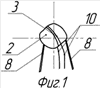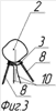 Сущность изобретения поясняется чертежами, где на фиг.1 изображен первый элемент – виток проволоки и второй элемент – сплавная головка термопары, на которой размещен виток проволоки. На фиг.2 изображен второй возможный вариант размещения первого элемента относительно второго элемента – виток проволоки обмотан вокруг одного проводника термопары. На фиг.3 изображен третий возможный вариант размещения первого элемента относительно второго элемента – виток проволоки обмотан вокруг двух проводников термопары. На фиг.4 изображена технологическая схема измерения скорости газового потока по новому способу, с помощью термопары и проволочного витка, размещенных в датчике, вблизи друг от друга.