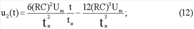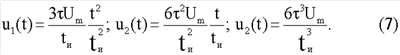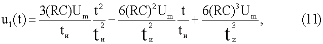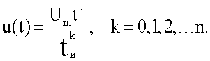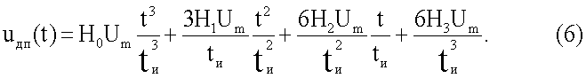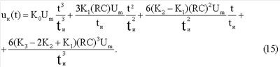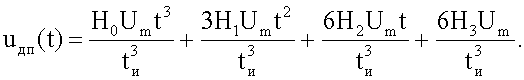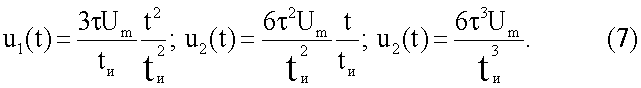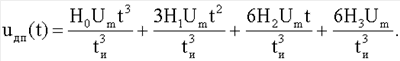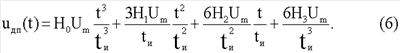 где Um – амплитуда, tи – длительность импульса. При этом на двухполюснике объекта измерения формируется импульс напряжения, которое содержит принужденную и свободную составляющие. Принужденная составляющая напряжения uдп(t) на многоэлементном двухполюснике после окончания переходного процесса состоит из напряжений кубичной, квадратичной, линейной и плоской (прямоугольной) формы (6):