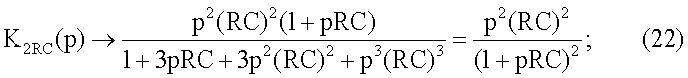 При достаточно большом значении N>>1 передаточные функции (18), (19) и (20) дифференцирующих RС-цепей приближаются к (8), (9) и (10):
