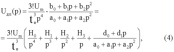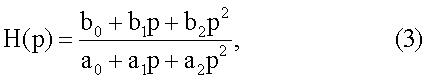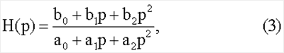где коэффициенты полиномов знаменателя а0, а1, а2 и числителя b0, b1, b2 определяются компонентами схемы замещения двухполюсника. Отсюда изображение напряжения на измеряемом двухполюснике