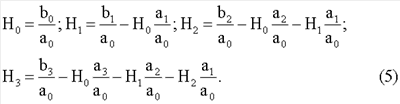 После четырех этапов уравновешивания напряжений uдп(t) и uк(t), используя формулы (16) и (6), вычисляют обобщенные параметры цепи с измеряемым двухполюсником H0, Н1, Н2 и Н3, с помощью которых затем находят параметры элементов двухполюсника.