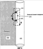 Задачи измерения в непроводящем буровом растворе решают и другие способы, среди которых патент США под 6191588, описывающее устройство для исследования удельной электропроводности формации, в котором используются непроводящий опорный элемент и кнопки, которые образуют электроды напряжения вместо электродов тока, описанных в патенте США 4468623. Электроды инжекции (подачи) тока размещены вне опорного элемента или в предпочтительном варианте непосредственно на его концах. В любом случае два инжектора (электрода, подающих ток) размещены таким образом, что ток проходит через формацию в основном параллельно опорному элементу и, таким образом, в предпочтительном варианте, протекает в существенной мере ортогонально к границам слоев. В таких условиях разность потенциалов между двумя кнопками пропорциональна удельному сопротивлению материала, обращенного к кнопкам.