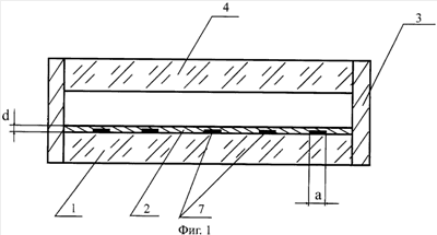 Рассмотренные варианты устройства работоспособны только в случае импульсного нагревания тонкопленочного слоя, когда подложка не успевает за время импульса существенно нагреться. Роль подложки может выполнять тонкая пленка, что позволит обеспечить работу устройства при локальном нагревании слоя 2 за счет уменьшения расплывания тепла в стороны от места нагревания.