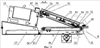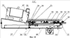 Накопительно-выдающее устройство – презентер 26 включает подвижный накопительный лоток 28, который приводится в движение кривошипно-шатунным механизмом 29. Билетный принтер 21 закреплен на кронштейне 30. Под кронштейном принтера установлена реджект-кассета 27. На неподвижном основании на бочкообразных роликах 31 и 32, закрепленных на осях 35 и 36, установлен эластичный транспортирующий ремень 44. Накопительный лоток 28 вращается на оси. На бочкообразных роликах 33 и 34, закрепленных на осях 53, 54, установлен эластичный транспортирующий ремень 43. Для привода кривошипно-шатунного механизма 29 подъема накопительного лотка используется электрический мотор-редуктор 37. Верхнее и нижнее положения накопительного лотка контролируются щелевыми оптическими датчиками 55 и 56. Транспортирующие ремни 43 и 44 приводятся электродвигателем 38 с редуктором, включающим шестерни 39, 40, 41, 42. Ведущая шестерня 39 закреплена на валу электродвигателя 38. Ведомые шестерни 41 и 42 закреплены на приводных осях 35 и 53. Промежуточная шестерня 40 установлена на промежуточной оси 45. Движение билета по тракту контролируется оптическими отражательными датчиками 49, 50, 51, 52. Для переноса отпечатанного и отрезанного билета из принтера в накопительный лоток используется прижимная скоба 46 с прижимным роликом 47. Прижимная скоба 46 приводится в движение за счет увеличенной с помощью пружины 48 силы трения в паре шестерен 57, 58.