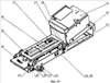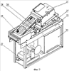 на фиг.20 – накопительно-выдающее устройство – презентер в сборе с билетным принтером (накопительный лоток в нижнем – выдающем – положении), вид в аксонометрии спереди – справа;