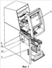 на фиг.16 – накопительно-выдающее устройство – презентер в сборе с билетным принтером (накопительный лоток в нижнем – выдающем – положении), вид спереди;