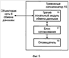 Команды тревожной сигнализации с выхода блока 11 формирования команд последовательно через центральное согласующее звено 12, через центральный модуль 13 обмена данными и, далее, по объектовой сети 6 обмена данными передаются в тревожные сигнализаторы 15 (фиг.5) – на входы третьих локальных модулей 16 обмена данными. Далее, эти команды через блоки 17 согласования поступают на оповещатели 18. В соответствии с заданными программными установками эти команды одновременно, либо в определенной последовательности активируют различные виды оповещателей 18 (например, сирен или ламп стробирующего света), которые должны оказать отпугивающее действие на проникших в охраняемое помещение злоумышленников.