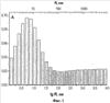 В реактор с мешалкой, обогревом, обратным холодильником, термометром, дозатором жидкости загружали 35,0 г золя кремнезема, полученного мембранным концентрированием исходного раствора гидротермального месторождения. Перед мембранным концентрированием гидротермальный раствор подвергали старению для завершения нуклеации молекул ортокремниевой кислоты и роста частиц кремнезема. Химический состав исходного гидротермального раствора представлен в таблице 1. В таблице 2 содержатся данные о средних размерах частиц кремнезема, полученные методом фотонной корреляционной спектроскопии (динамического светорассеяния). Размеры частиц зависят от температуры и рН, при которых проводилось старение раствора. С увеличением температуры и понижением рН конечный средний радиус частиц кремнезема возрастает. На фиг.1 представлены данные фотонной корреляционной спектроскопии (динамического светорассеяния) в виде зависимости амплитуды рассеянного света от радиуса частиц в пробе раствора Мутновского месторождения. Средний радиус частиц согласно фиг.1 около 7 нм.