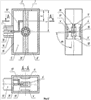 На фиг.2 показан двухзазорный выходной резонатор с двумя петлями связи (вид со стороны вывода СВЧ-энергии, продольное и поперечное сечения) для предлагаемого СВЧ-прибора клистронного типа по первому варианту изобретения, который изображен на фиг.1.