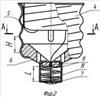 На фиг.3 изображен разрез А-А цоколя, где приведено размещение на внутренней поверхности изолятора 6 2-х отогнутых лепестков ограничителя 9.
