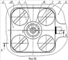 Предлагаемый миниатюрный коаксиальный СВЧ соединитель, конструкция которого приведена на фиг.2а и 2б, содержит внешний проводник 2, выполненный в виде цельнометаллического фланца (например, в виде прямоугольной призмы или цилиндра), в центральной части которого выполнен сквозной продольный канал 18, который может быть выполнен ступенчатым вдоль оси для согласования волновых сопротивлений СВЧ кабеля и СВЧ ввода. В периферийной части фланца выполнены крепежные отверстия 19. В сквозном продольном канале 18 фланца соосно размещены внутренний проводник 1 (например, из бериллиевой бронзы) и окружающая его опорная диэлектрическая втулка 3 (например, из фторопласта). Внутренний проводник 1 выполнен в виде полого цилиндра и содержит участок с ламелями 10, образующими гнездовую часть разъемного контакта. Проводники 1, 2 жестко скреплены друг с другом через опорную диэлектрическую втулку 3 за счет тугой посадки соприкасающихся элементов или за счет отбортовки одного из этих элементов. Сквозной продольный канал 18 цельнометаллического фланца перекрыт плоской торцевой крышкой 4 (на фиг.2б крышка не показана), которая соединена с фланцем, например с помощью пайки. При этом обращенный в сторону торцевой крышки 4 конец внутреннего проводника 1 выступает над опорной диэлектрической втулкой 3 и отделен от торцевой крышки 4 зазором 5, величину которого выбирают исходя из требуемых электрических параметров СВЧ соединителя. Во фланце выполнено отверстие 8 (ось отверстия расположена перпендикулярно продольной оси СВЧ соединителя), причем отверстие 8 расположено напротив выступающего над опорной диэлектрической втулкой 3 конца внутреннего проводника 1. С противоположной стороны СВЧ соединителя торец внутреннего проводника 1, торец внешнего проводника 2 (основание фланца СВЧ соединителя) и основание опорной диэлектрической втулки 3 расположены в одной плоскости.