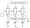 На фиг.2 в качестве примера показана схема включения трех преобразовательных устройств контейнерного типа 1.1 1.3, позволяющая организовать как трехфазный выпрямительный мост для плавки постоянным током гололеда на ВЛ и тросах, так и компенсацию реактивной мощности с помощью подключения конденсаторных батарей 13.1 13.3. В режиме плавки гололеда оба разъединителя 11 и 12 замкнуты, а в режиме компенсации разомкнуты. При этом разъединители 5 (фиг.1) в контейнерах 1.1 1.3 в режиме плавки разомкнуты, а в режиме компенсации замкнуты. Как видно, перевод установки из режима плавки гололеда в режим компенсации реактивной мощности при соединении реактивных элементов в «звезду» достигается коммутацией всего двух разъединителей. При использовании схемы соединения в «треугольника» понадобится еще один разъединитель. В любом случае это существенно меньше, чем в [1, 2].