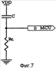 фиг. 7 показывает RC-цепь, используемую для осуществления перевода в активное состояние микропроцессора в MCU, с тем чтобы выполнять цикл сканирования, и