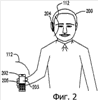 На Фиг.4 изображен вид в перспективе одного варианта осуществления изобретения, воплощенного в телефонной гарнитуре. В этом конкретном варианте осуществления телефонная гарнитура 300 содержит датчик 302 и экран 304 дисплея. Гарнитура 300 также включает в себя динамик 306 для его размещения в ухе пользователя. Дугообразная секция 308 обеспечивается для крепления динамика 306 к уху пользователя способом, улучшающим комфорт для пользователя и неподвижность динамика 306. Несмотря на то, что этот вариант осуществления настоящего изобретения включает в себя дугообразную секцию 308, могут быть использованы и различные другие средства крепления гарнитуры 300, в соответствии с вариантами осуществления настоящего изобретения. Другие аспекты такой гарнитуры общеизвестны в предшествующем уровне техники и могут включать в себя средства связи Bluetooth для связи с телефонной трубкой или чем-либо подобным.
