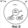 Фиг.8 – схематичное представление приведенной для примера базовой станции, реализованной в соответствии с настоящим изобретением, в текущий момент работающей в активном режиме работы базовой станции, причем сотовая ячейка базовой станции включает в себя активные беспроводные терминалы.