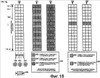 На фиг.17 приведено представление 1700, иллюстрирующее часть примерной временной и частотной структуры восходящей линии OFDM. В базовой станции временные характеристики восходящей линии могут отсчитываться относительно временных характеристик нисходящей линии, например относительно сигнала маяка нисходящей линии. Вертикальная ось 1702 показывает тона восходящей линии, а также включает в себя блок 1701 тонов восходящей линии, например 113 непрерывных тонов. Горизонтальная ось 1704 представляет время. Временная структура восходящей линии включает в себя интервалы 1706, 1706′ доступа и регулярные интервалы 1708 сигнализации восходящей линии. Интервалы доступа, например интервал 1706 доступа, могут быть использованы для сигналов доступа, например сигналов запроса регистрации и сигналов запроса активизации базовой станции. В некоторых вариантах осуществления, в зависимости от режима работы базовой станции, по меньшей мере, некоторые из тонов-символов интервала доступа используются для различных целей. По меньшей мере, некоторые из сигналов, передаваемых WT в течение интервалов доступа, не обязательно должны быть точно синхронизированы по времени по отношению к базовой станции, в то время как сигналы, передаваемые WT в течение регулярного интервала 1708 сигнализации восходящей линии, обычно имеют точную временную синхронизацию, например, в пределах длительности циклического префикса. В некоторых вариантах осуществления сигнализация в течение интервала доступа использует сегменты на конкурентной основе, в то время как сигнализация в течение регулярного интервала сигнализации восходящей линии использует выделенные или назначенные сегменты. Регулярные интервалы сигнализации восходящей линии могут быть использованы для различной сигнализации, включая сигнализацию назначенного сегмента канала трафика восходящей линии и сигнализацию выделенного канала управления восходящей линии.