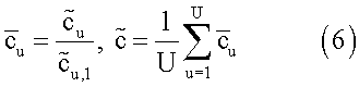 Следует заметить, что в определенных аспектах элемент нормализации может быть любым элементом вектора калибровки, пока он является тем же самым элементом для каждой оценки вектора калибровки, например первым элементом. Сумма нормализованных элементов затем делится на общее число элементов U вектора