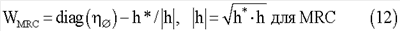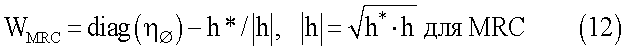 В некоторых аспектах может быть также желательно калибровать усиление в отношении только фазы или как фазы, так и амплитуды. Это объясняется тем, что в некоторых случаях метод калибровки может ухудшить рассогласование по амплитуде. Это можно легко увидеть, рассматривая экстремальный случай, где нет рассогласования по фазе и присутствует только рассогласование по амплитуде в рассогласованиях усиления. В этом случае усиление за счет формирования диаграммы направленности с калибровкой хуже, чем усиление за счет формирования диаграммы направленности без калибровки, что означает, что рассогласование по амплитуде становится хуже. Способом для улучшения является использование калибровки только по фазе для формирования диаграммы направленности вместо калибровки, использующей амплитуду и фазу для вычисления весов калибровки. В этом случае калиброванные веса формирования диаграммы направленности вычисляются только для фазы. Аспект этого подхода для формирования диаграммы направленности MRC отображен в уравнении 12 ниже.