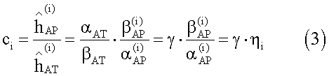 В уравнении 3 ci является общим отношением рассогласований между передачами обратной линии связи и передачей прямой линии связи, является отношением рассогласований усиления между трактами передатчиков и приемников терминала доступа и i является отношением рассогласований трактов приема и передачи для i-й антенны в точке доступа. Следует заметить, что является в основном константой для каждой пары антенн в точке доступа. Также в некоторых отношениях уравнение 3 идеализировано, так как оценка шума не включена в него.