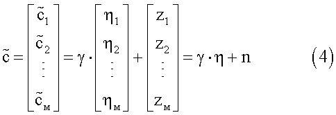 Вектор n включает в себя эффекты ошибок измерений канала (MSE) и также эффекты декорреляции измерений канала, так как измерения усилений выполняются в различные моменты времени, таким образом, разрешая изменение канала в течение времени, а также температуры и другие изменения для воздействия на измерение.