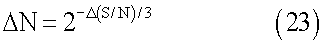 где (S/N) соответствует увеличению желаемого коэффициента сигнал/шум в децибелах (дБ), и N соответствует увеличению длины последовательностей, использованных для получения упомянутого улучшения. Другими словами, если длина последовательностей удвоена, снижение шума составляет 3 дБ. Обратно, для получения определенного коэффициента сигнал/шум в децибелах, длина последовательности должна быть увеличена согласно выражению (22).