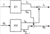 На фиг.2 показана принципиальная схема способа кодирования, заложенного внутри блока (2) на фиг, 1. Она представляет собой два идентичных блока 2.1 и 2.2 с реализацией свертывания (конволюции), описанного в предыдущей секции, со входными сигналами I1 и Q1 соответственно. Оба блока выдают по две фазы, I21/Q21 и I22/Q22, которые на выходе складываются для получения сигналов I2 и Q2, которые затем будут направлены на каскад передачи.