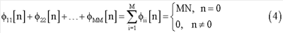 где ii – это индивидуальные автокорреляции каждой из выбранных М дополнительных последовательностей длиной N. Конкретно для случая пар дополнительных последовательностей Голея: