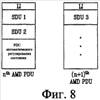 По Фиг.8, когда существуют пользовательские данные и управляющая информация для передачи, AM RLC встраивает SDU 1 и SDU 2 в n-й AMD PDU и затем решает, осталось ли место, в которое может быть вставлена управляющая информация в формате PDU автоматического регулирования состояния в n-й AMD PDU. Если принимается решение о том, что управляющая информация может быть вставлена в n-й AMD PDU, то вставляется PDU автоматического регулирования состояния. Для этого SDU 2, расположенный перед PDU автоматического регулирования состояния, должен заканчиваться перед PDU автоматического регулирования состояния и не может быть включен в (n+1)-й AMD PDU. Другими словами, если SDU разделяется на, по меньшей мере, две части, то невозможно включить одну часть в n-й AMD PDU и другую часть в (n+1)-й AMD PDU.