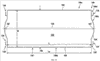 Подставка 101 для хранения обычно имеет форму прямоугольника с днищем 103, боковыми стенками 105, длинными сторонами 106b, 106с и узкими сторонами 106а, углами 120 и двумя отверстиями 107, в которых располагаются водовыпуски 109, не показанные здесь (но которые будут обсуждаться ниже при рассмотрении фигуры 4). В районе каждой узкой стороны 106а имеется выступ 124, в котором располагается отверстие 107. В указанном варианте реализации выступ 124 имеет арочную форму, хотя он может иметь и другую форму, такую как прямоугольник, треугольник или что-либо еще. Выступ 124 нужен для того, чтобы отверстие 107 или водовыпуск 109 находились за пределами прямоугольной поверхности для хранения, имеющей размеры L×В и которая ограничена длинными сторонами 106b, с и прямыми частями 106d узких сторон 106а или, другими словами, углами 120 подставки 101 для хранения (длина L, ширина В внутренней полезной площади или поверхности днища подставки для хранения).