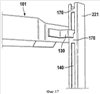 Водовыпуск 109 состоит из цилиндрического основного элемента 110, открытого в одну сторону (наверх) и закрытого снизу круглой нижней стенкой 111. Дренажное отверстие 112 позволяет вытекать воде, попадающей в цилиндрический основной элемент 110 сверху через край 116. Поворачивая водовыпуск 109 относительно продольной оси 113, возможно установить направление дренажного отверстия 112 и, таким образом, направление в котором вытекает вода. Таким образом, можно обеспечить то, что струя вытекающей воды попадает на подставку для хранения, расположенную ниже. Также может предусматриваться возможность ограничения угла вращения. Очевидно, что возможно наличие нескольких дренажных отверстий 112, распределенных по окружности основного элемента 110. Для того чтобы иметь смотровое отверстие, возможно, чтобы нижняя стенка была бы частично или полностью откидной или чтобы нижняя стенка снабжалась отверстием и заглушкой.