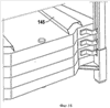 На фигуре 18 показан способ складирования подставок для хранения. Согласно данному способу профили 145 для придания жесткости, которые имеют U-образную форму в поперечном сечении, крепятся снизу к днищу 103 с целью увеличения допустимой нагрузки на днище или на подставку для хранения, а кромки на концах служат в тоже время в качестве средства для центрирования следующей подставки для хранения, располагаемой над данной.